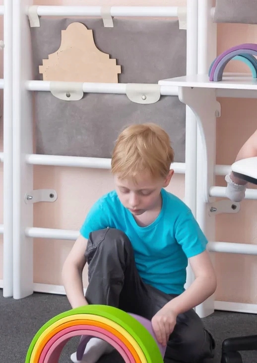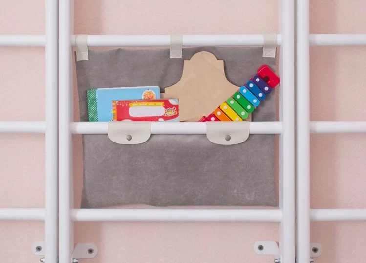 Подвесная сумка для лестницы для упражнений изготовлена из бархата – материала, приятного на ощупь. В него можно быстро спрятать кубики или другие игрушки.
