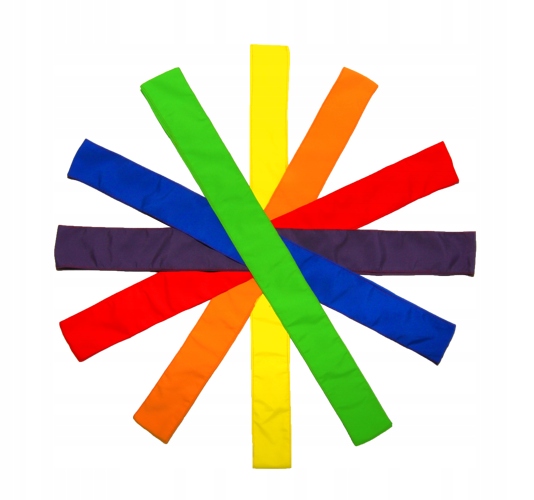 Набор из 6 гимнастических створки в 6 цветах: желтый, оранжевый, красный, зеленый, синий, фиолетовый. Они сделаны из приятного на ощупь и долговечного материала с яркими цветами.