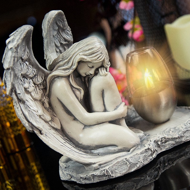 ➡️ Декоративная гипсовая садовая фигурка-надгробие со светодиодной лампой в форме ангела