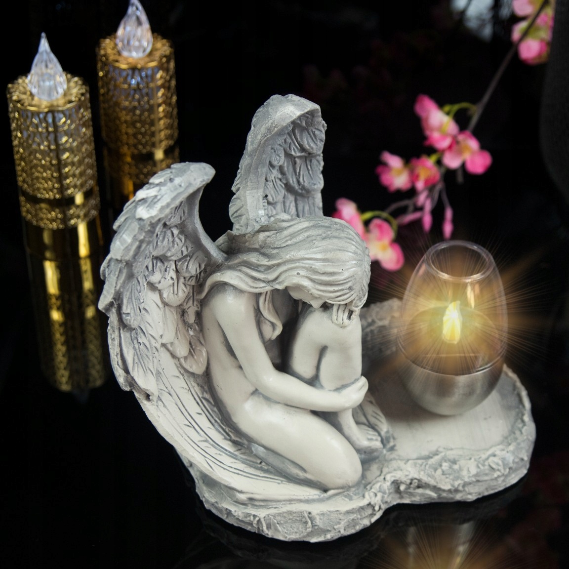 ➡️ Фантастически оформленная гипсовая фигурка с солнечным светом, которая прекрасно украсит любой сад или надгробие