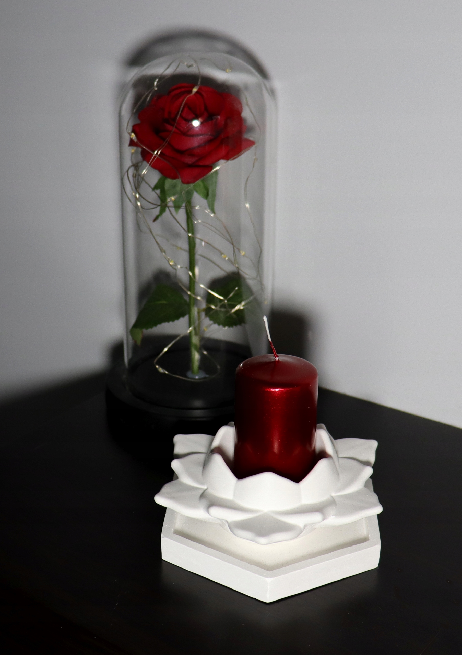 Гіпсовий керамічний підсвічник для квіткового горщика з квіткою на полиці