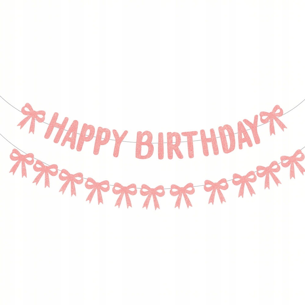 Очаровательная двухслойная гирлянда на день рождения розового цвета с нежным блестящим блеском. Он состоит из надписи С ДНЕМ РОЖДЕНИЯ и декоративных бантов, которые придают всему неповторимый шарм. Идеально подходит для украшения комнаты, дома или фотографического фона.