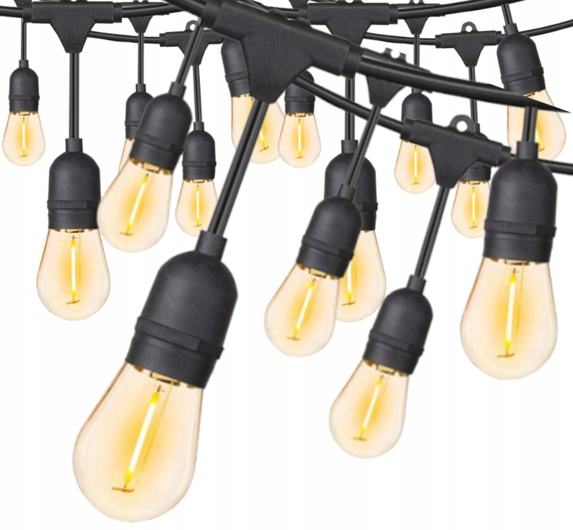 GIRLANDA OGRODOWA ZEWNĘTRZNA ŁAŃCUCH ŚWIETLNY 15M + 15X ŻARÓWKA LED E27