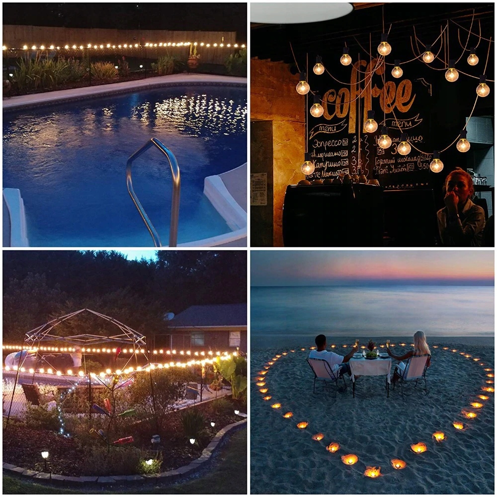 Гирлянда состоит из 50 высококачественныхводонепроницаемые лампочки общей длиной 15 м, с расстоянием между двумя лампочками около 30 см.