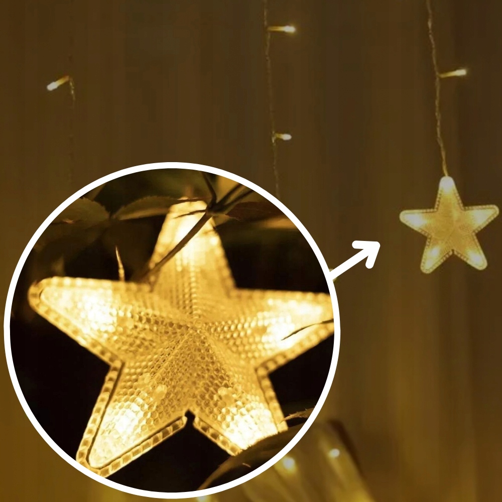 Гирлянда-штора СВЕТ со светодиодными звездами ЛАМПЫ подвесные звезды ТЕПЛЫЕ 3м