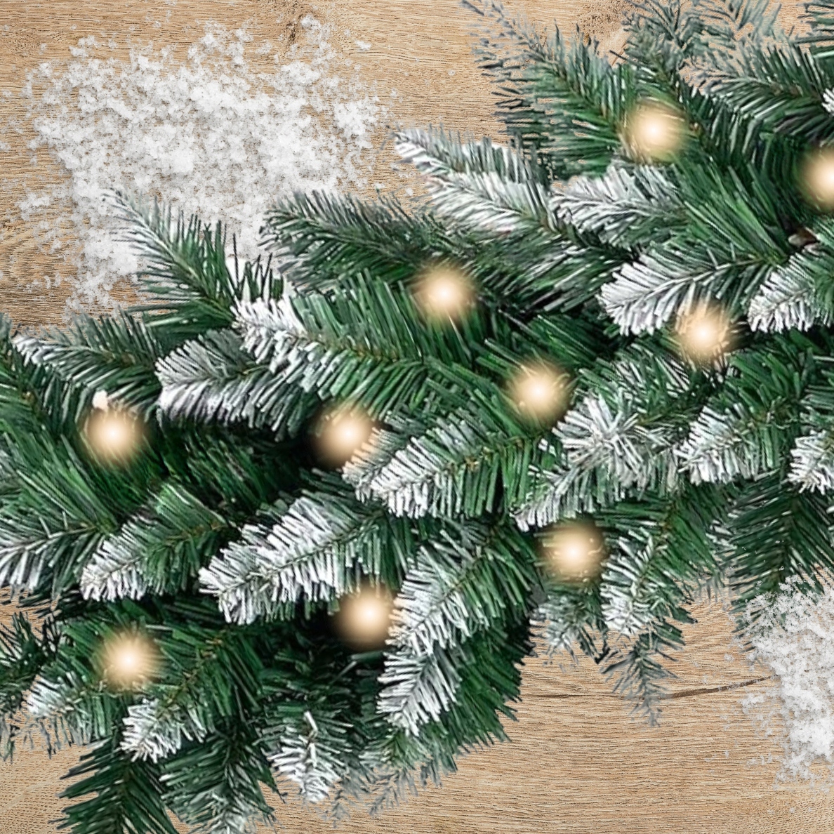 Гирлянда покрыта нежным снежным эффектом, что придает ей неповторимый характер. Выглядит так, будто ее только что принесли из зимнего леса - это украшение, которое привнесет в интерьер волшебную атмосферу.
