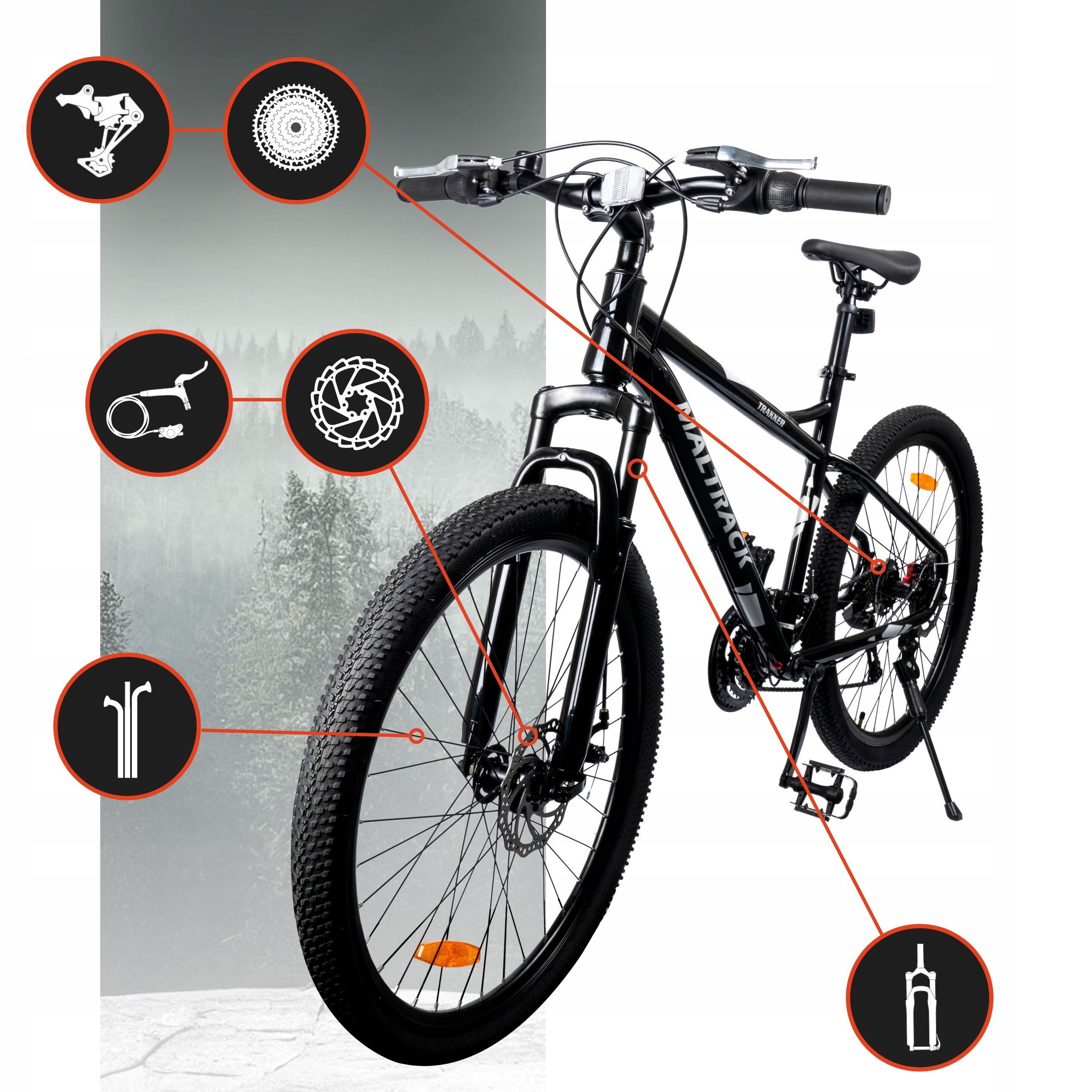 ГОРНЫЙ ВЕЛОСИПЕД MTB MALTRACK TRAKKER ЧЕРНЫЙ, 21 ПЕРЕДАЧА, 2 ДИСКОВ, СТАЛЬНАЯ РАМА, КОЛЕСА 15 ДЮЙМОВ, 26 ДЮЙМОВ, СВЕТООТРАЖАЮЩАЯ РАМА