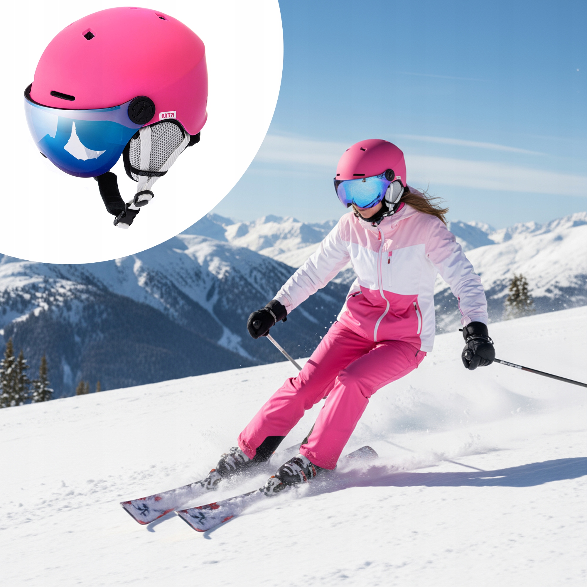 ЛЫЖНЫЙ ШЛЕМ ДЛЯ СНОУБОРДА СО СТЕКЛОМ METEOR FALVEN L 58-61 с фильтром S2 регулируемый розовый