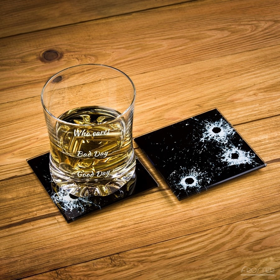 - две стеклянные подставки с изображением пулевого отверстия