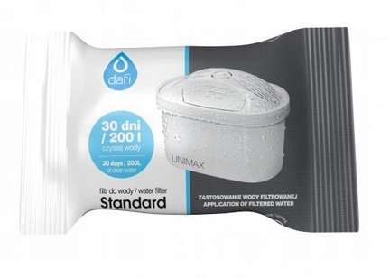 Фильтр Dafi Unimax содержит тщательно подобранную и систематически подобранную контролируемую фильтрующую смесь, состоящую из активированного угля и ионообменной смолы. Благодаря этому фильтр существенно снижает жесткость воды (вызывающую отложение накипи), содержание тяжелых металлов, соединений хлора и других нежелательных веществ, которые могут повлиять на вкус водопроводной воды. Подходит для большинства кувшинов других производителей.