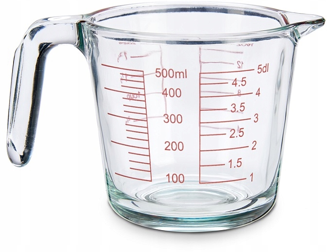 Традиционный стеклянный кувшин с мерным стаканчиком необходим на каждой кухне. Это полезно, когда мы хотим отмерить точное количество ингредиентов для готовящихся блюд и выпечки.