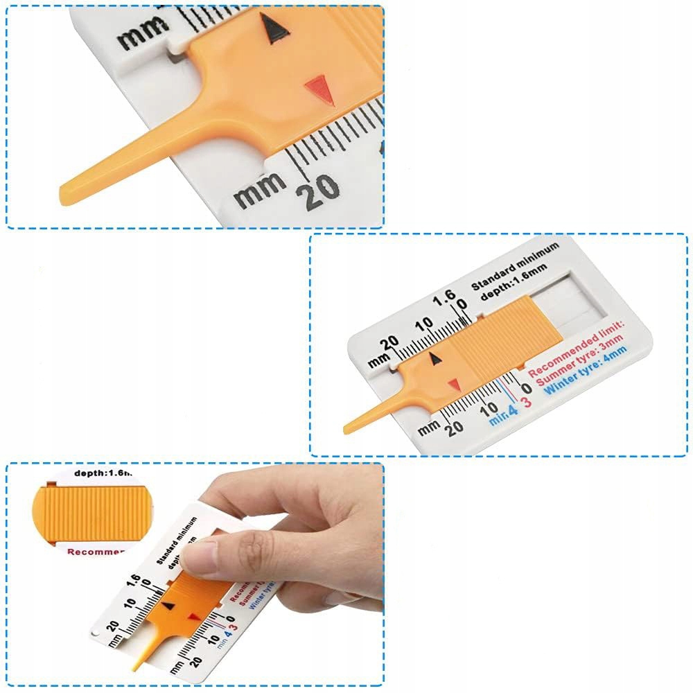 Глубина протектора — изделие, которое идеально подойдет для автомастерской, шиномонтажной мастерской или частного гаража. Благодаря простой конструкции прибора проведение измерений очень простое и интуитивно понятное, четкая шкала и противоскользящая поверхность делают измерение четко видимым и понятным. Небольшой размер позволяет всегда носить его с собой или хранить где угодно. Диапазон измерения 0-20 мм с точностью до 1 мм.
