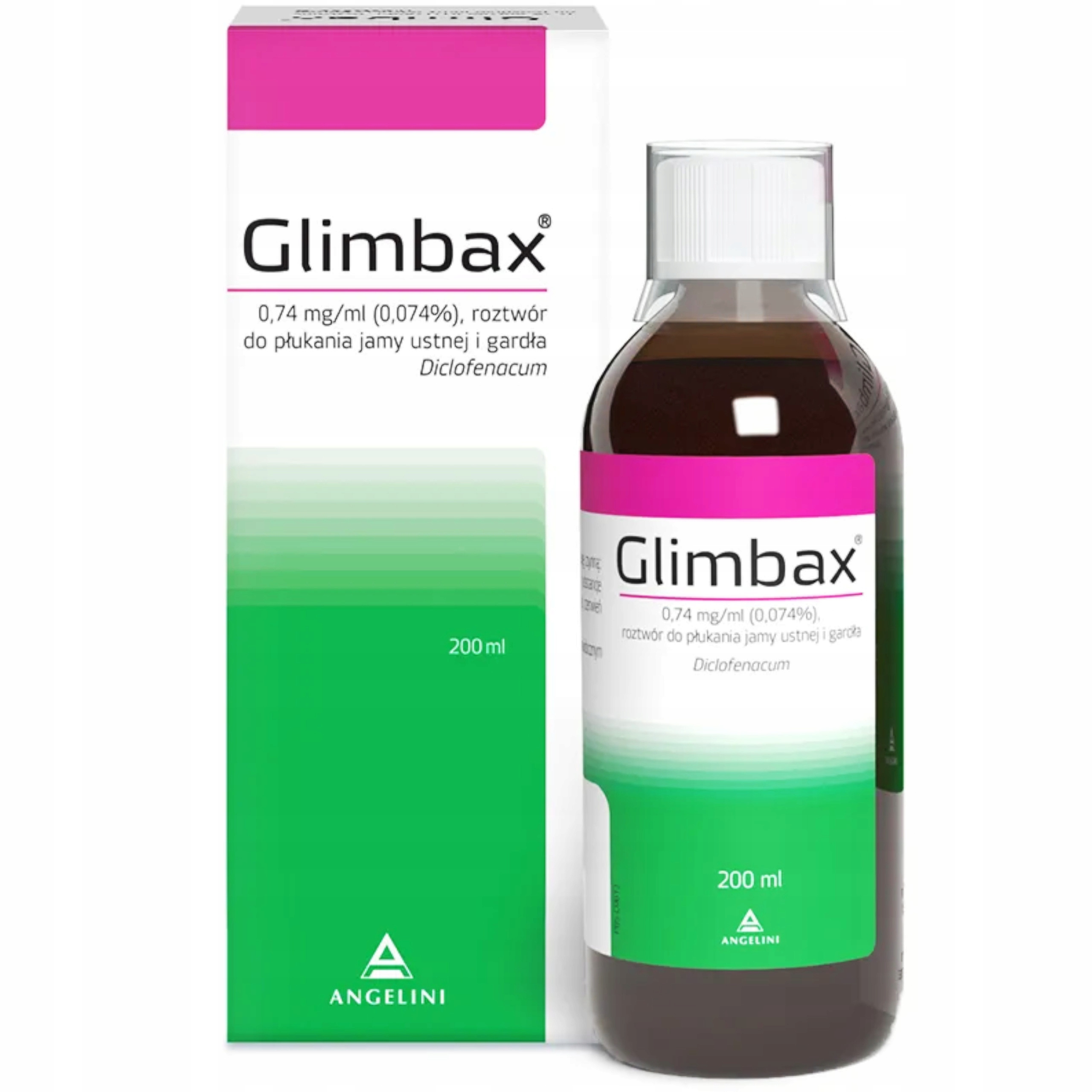 Глимбакс – препарат, предназначенный для местного применения в виде раствора для полоскания рта и горла. Действующее вещество препарата – диклофенак, который относится к группе нестероидных противовоспалительных средств (НПВП). Диклофенак, нанесенный на слизистые оболочки полости рта, оказывает обезболивающее и противовоспалительное действие.