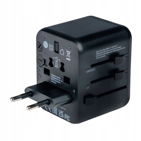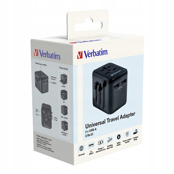 Глобальный дорожный адаптер Verbatim UTA-01, 2 порта USB, 12 Вт