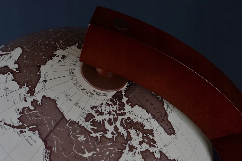 Меридиан соответствующего цвета и прочная основа из темно-коричневого дерева.