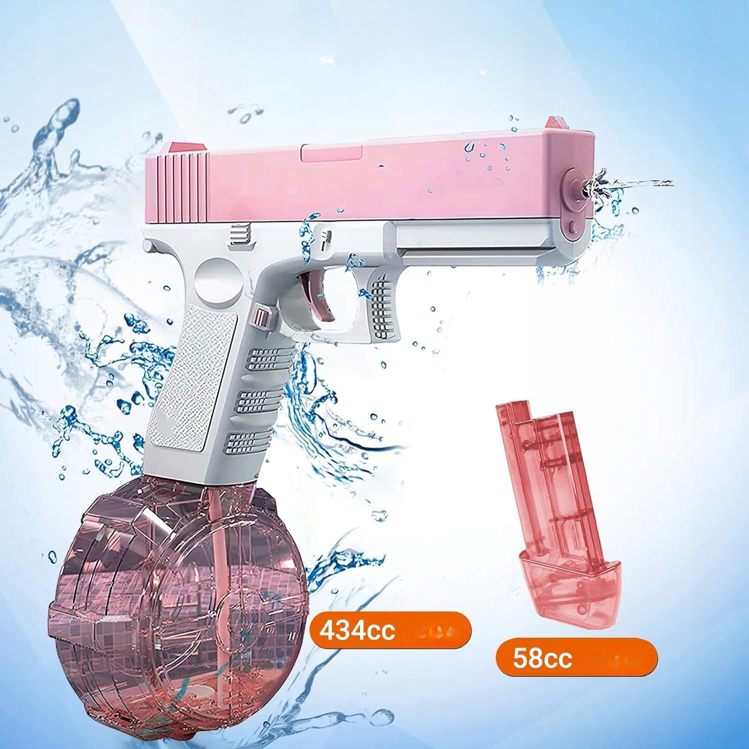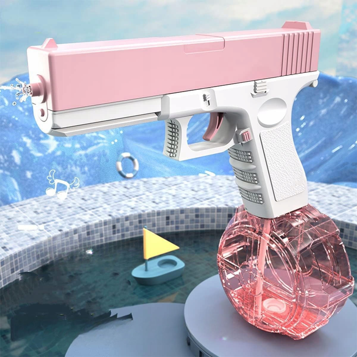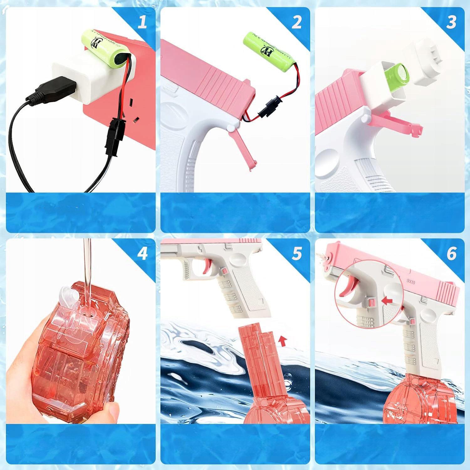 Сильный разбрызгивающий пистолет идеально подходит для занятий на свежем воздухе, пляжей, песчаных пляжей, бассейнов, вечеринок и предоставит вам бесконечное веселье. В этот жаркий сезон испытайте захватывающую борьбу с водными пистолетами с друзьями или детьми - летний подарок для детей. (Не погружайте электрический водный пистолет в воду, чтобы избежать повреждения электронных компонентов! Время зарядки> 2 часа)