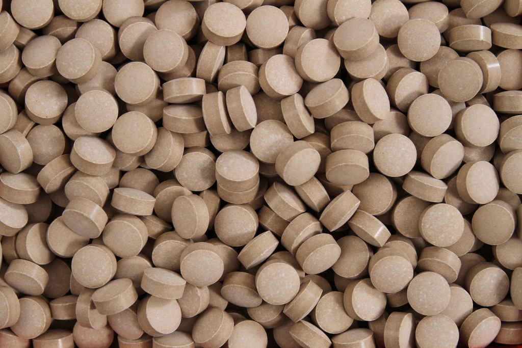 Высокопротеиновая кормовая смесь в виде таблеток диаметром 8 мм с содержанием бета-глюкана для аквариумных рыб