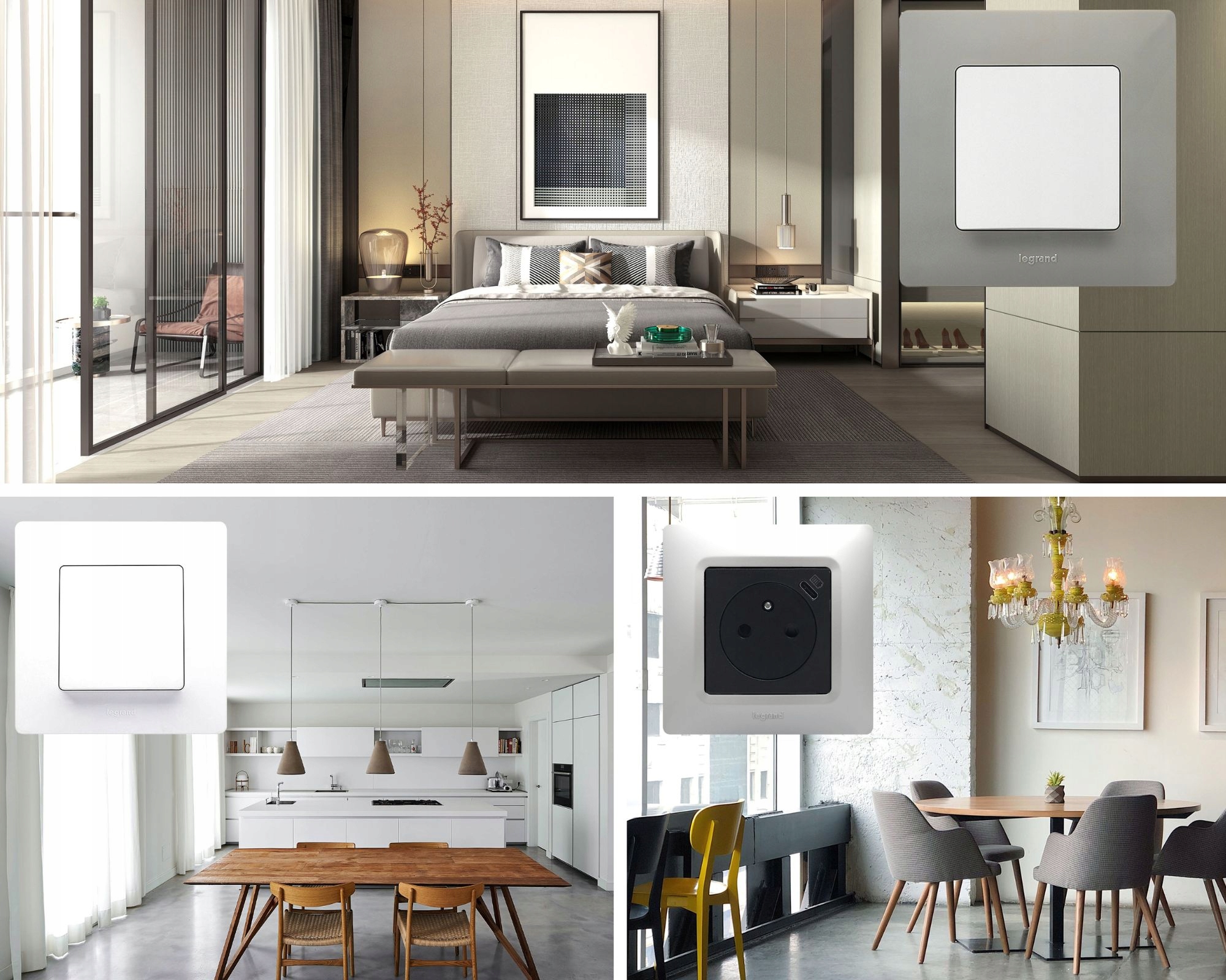 Niloe включают традиционные разъемы, розетки и рамки шести популярных цветов: белого, кремового, серого, красного, алюминиевого и графитового.