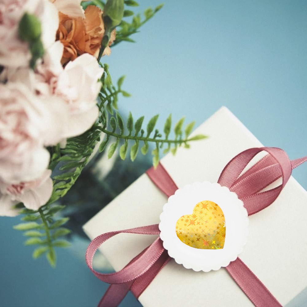 Добавьте исключительный блеск и элегантность благодаря нашим исключительным наклейкам! Каждая наклейка показывает золотое сердце изнутри с золотыми звездами, которое мерцает в зависимости от угла падения света . Идеально подходит для украшения, упаковки подарков, проектов DIY и многих других креативных приложений!
