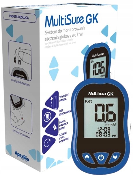 Прибор MultiSure GK - медицинский прибор, предназначенный для измерения концентрации кетоновых тел в крови , для использования с тест-полосками MultiSure GK Ketone.