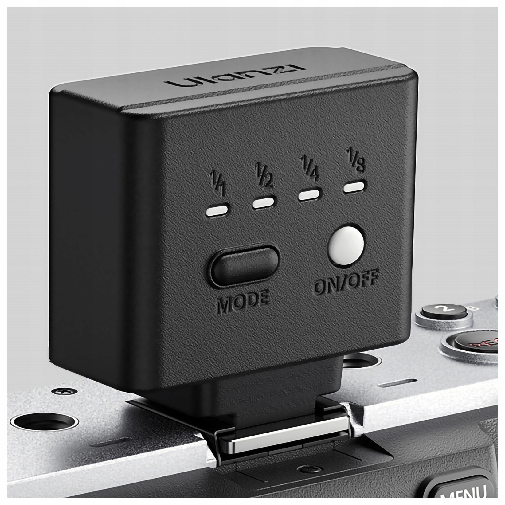 Короткое пресс изменяет мощность Flash - от полной мощности до 1/8.