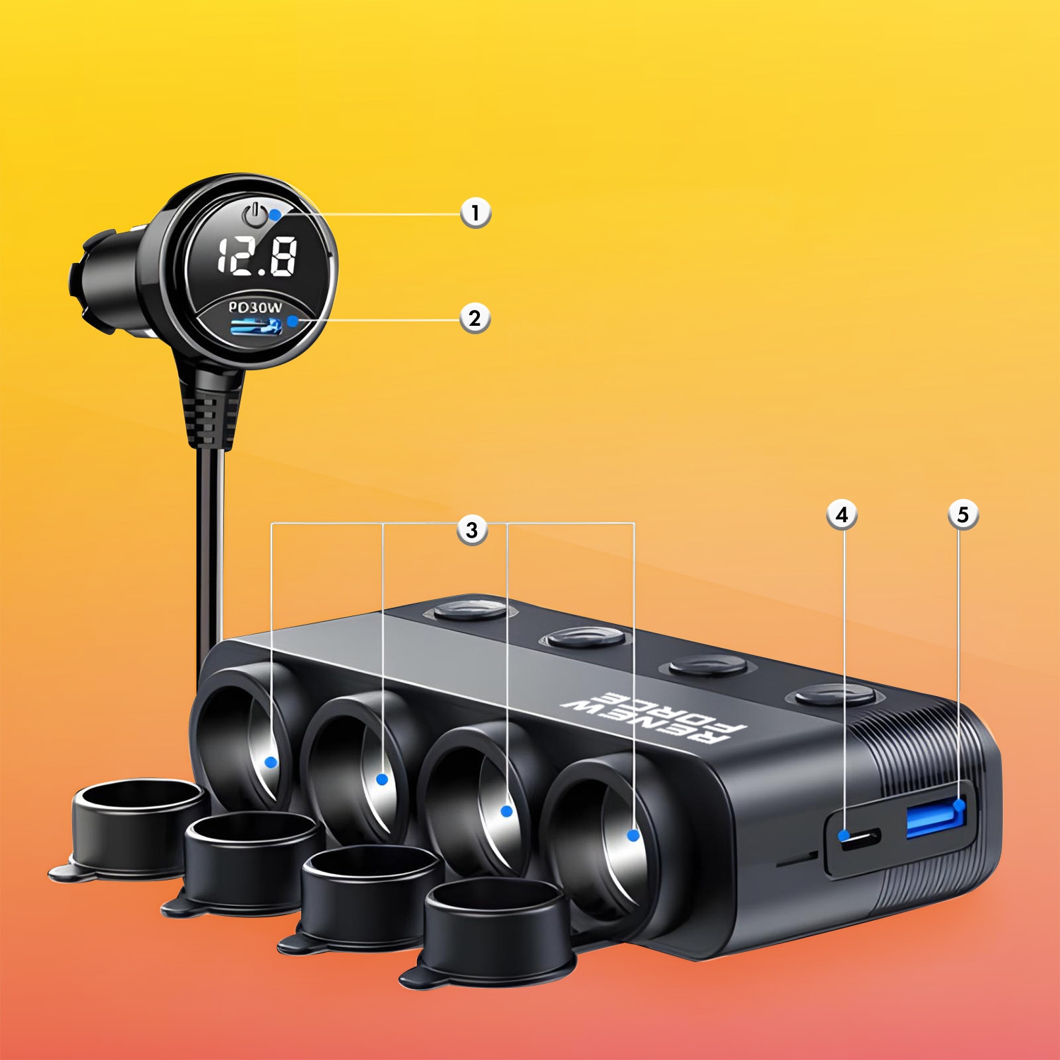 ? Современный разветвитель для прикуривателя, оснащенный дополнительными портами USB и вольтметром, идеально подходит для людей, которые часто путешествуют и вам нужно одновременно заряжать несколько устройств в автомобиле. Ниже вы найдете все ключевые особенности продукта и его функции.