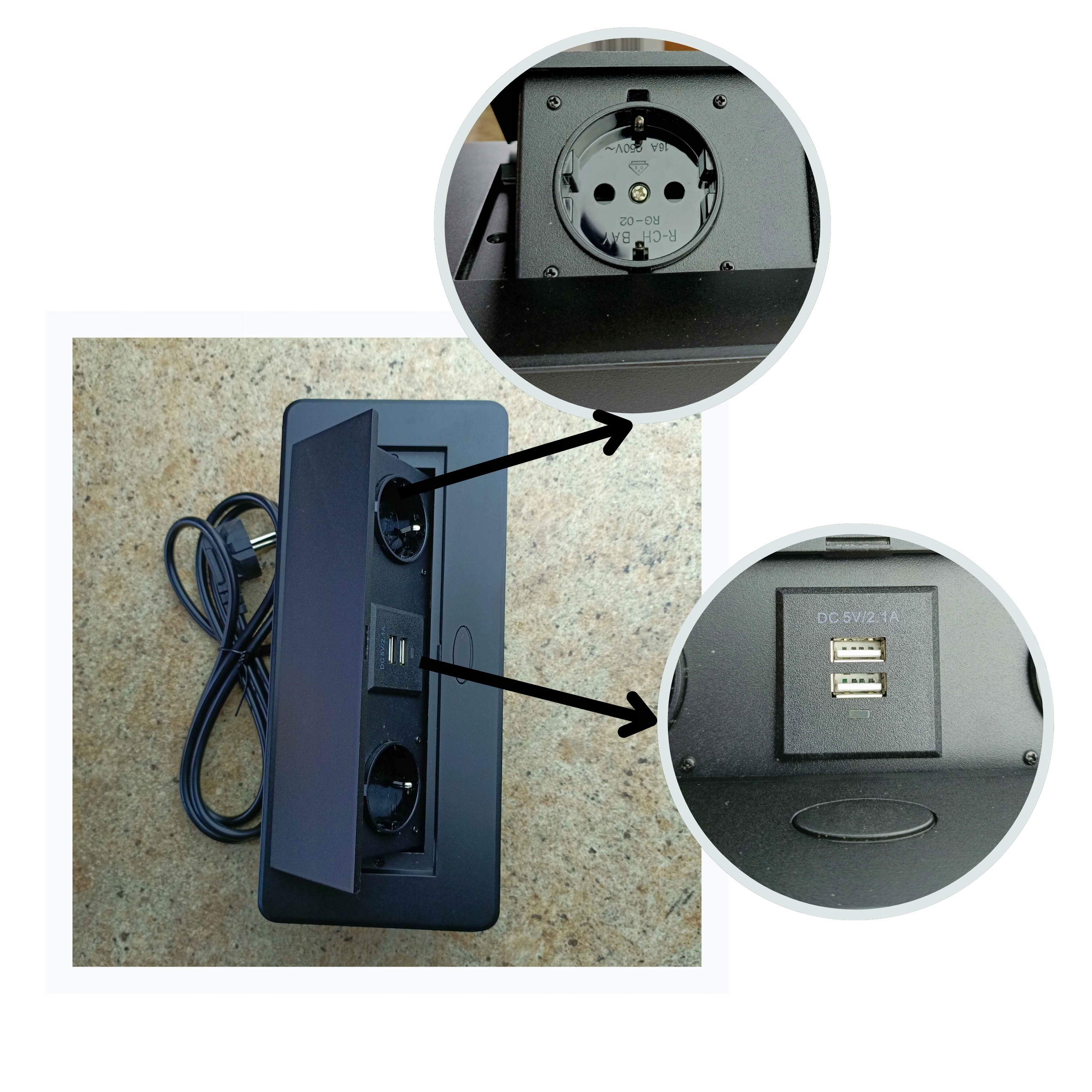 Гнездо, скрытое в верхней столешнице + 2 usb black