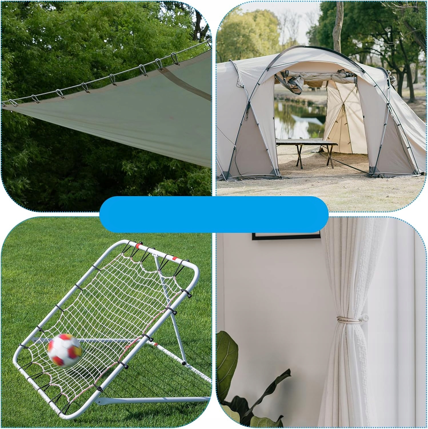 - широкий спектр применений: Очень гибкие и оборудованные с высоким качественным полым шариком. Резина сферического расширения является идеальным аксессуаром для защиты крыши и садовых палаток, а также рекламных баннеров, подсказки для лесов и брезентов для строительства заборов. Гибкое соединение с багажом и т. Д.
