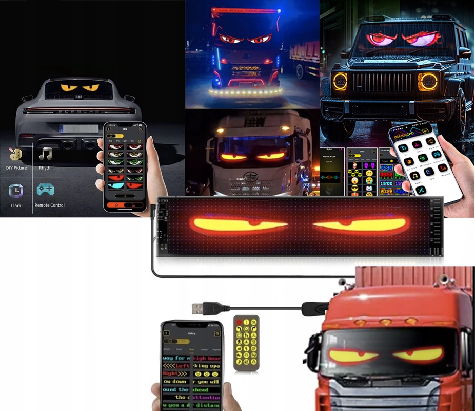 ГИБКАЯ ПАНЕЛЬ, СВЕТОДИОДНЫЙ ЭКРАН, ПРОГРАММИРУЕМЫЙ ДЬЯВИЛЬСКИЙ ГЛАЗ АВТОМОБИЛЯ 37,4x9,2 СМ