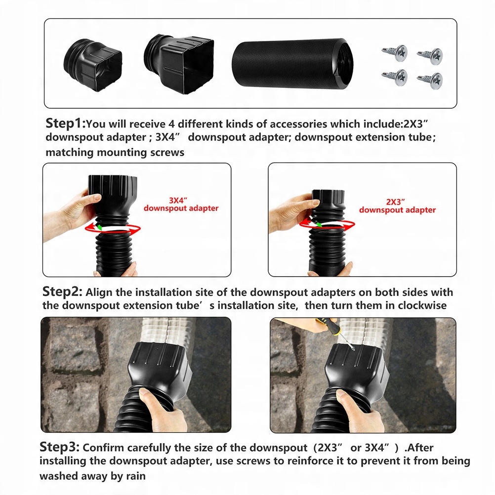 Удлинительная труба водосточной трубы гибкая, но прочная и долговечная, имеет гибкую конструкцию и прочную конструкцию, что обеспечивает стабильное время использования. Это удлинение водосточной трубы можно удлинить и согнуть по вашему желанию, что позволит закопать его в землю и создать сложный фундамент.
