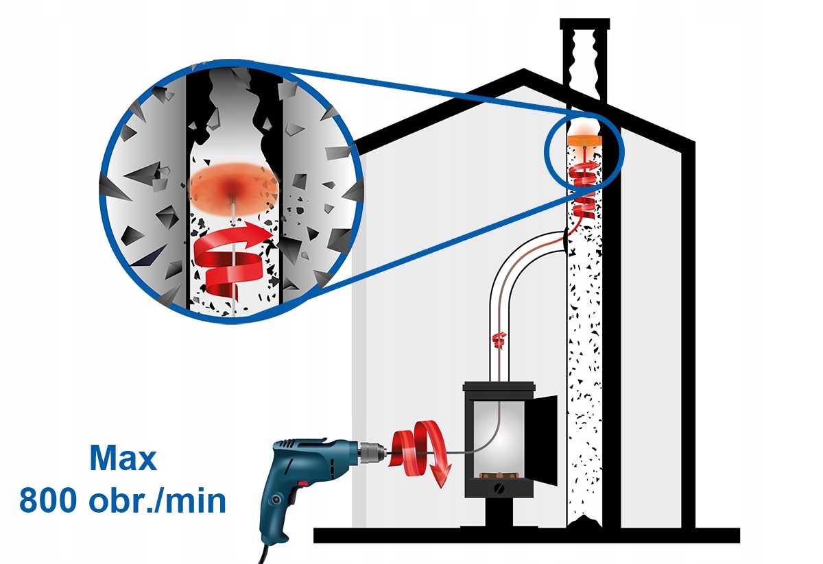 ✅ Ускорит процесс чистки - 800 об/мин. / мин позволит прочистить дымоход всего за несколько мгновений