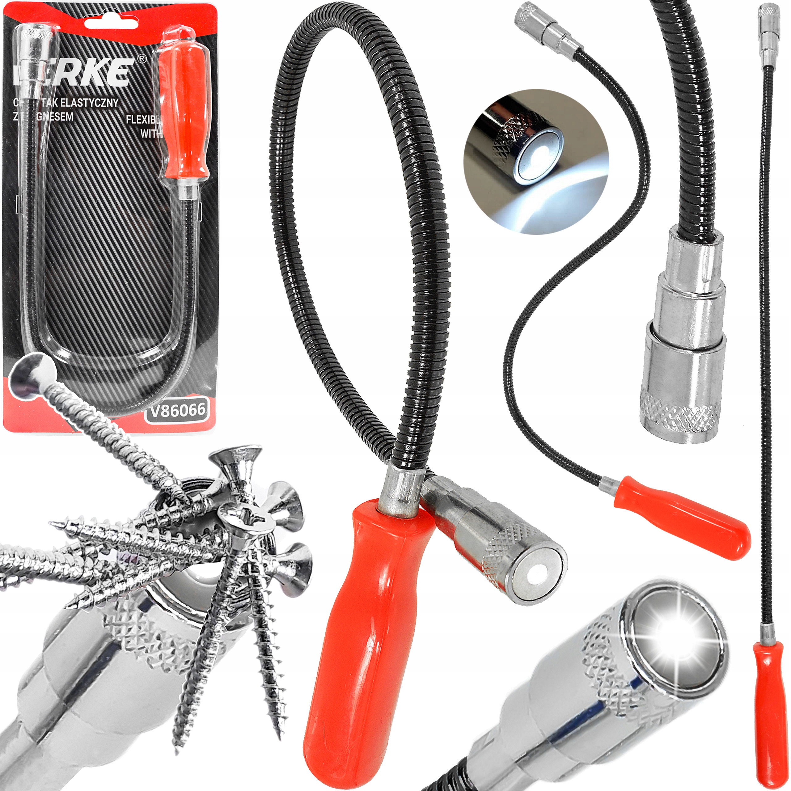 Идеально подходит для подъема и удаления металлических предметов из труднодоступных мест, например, водосточных труб, за шкафами, моторным отсеком и т. д. Благодаря фонарику вы легко найдете потерянный винт, гайку или гвоздь даже в темных местах. .