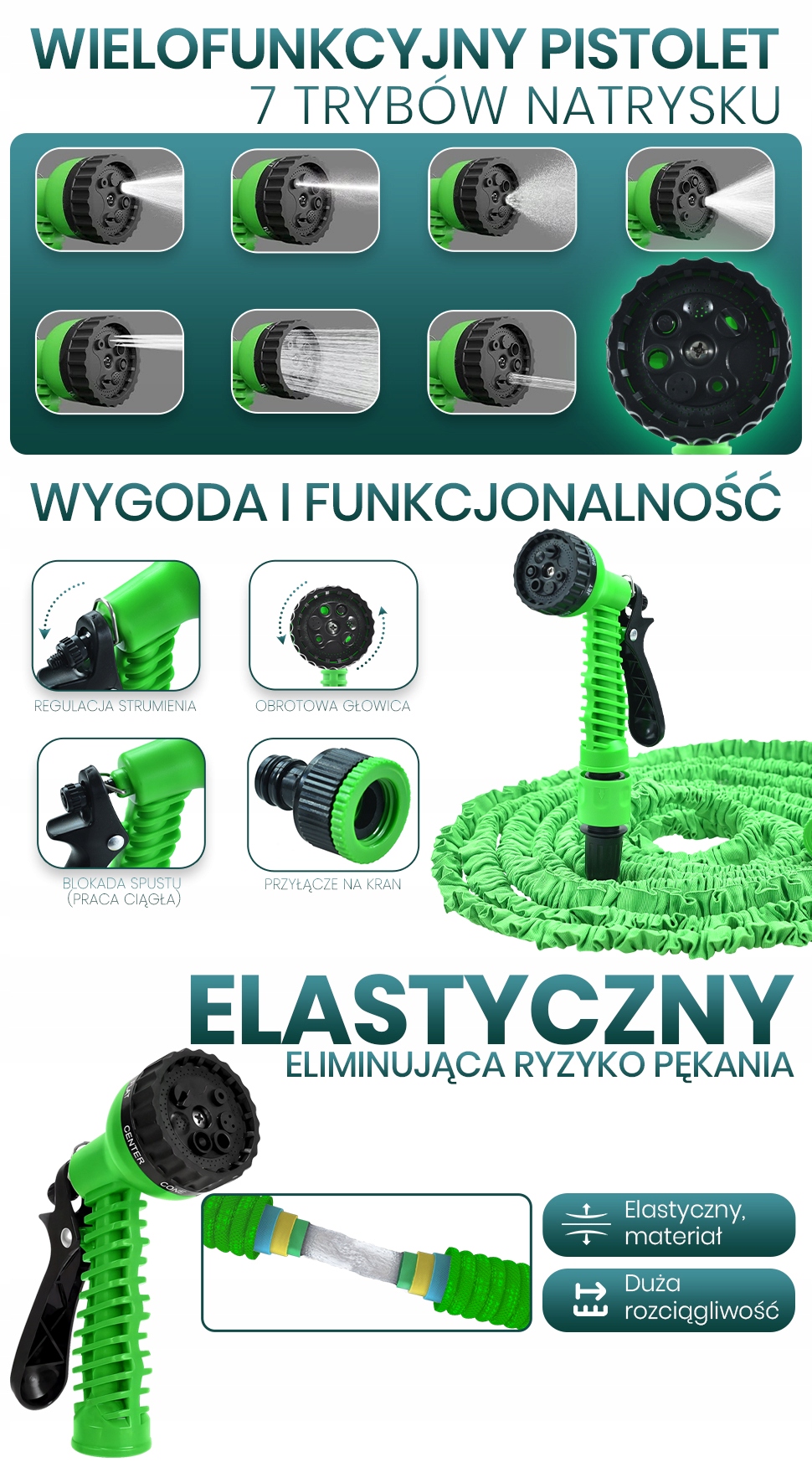 ГИБКИЙ ШЛАНГ 10-30 М УДЛИНЯЕМЫЙ + СОЕДИНИТЕЛИ + ПРОЧНЫЙ ПИСТОЛЕТ