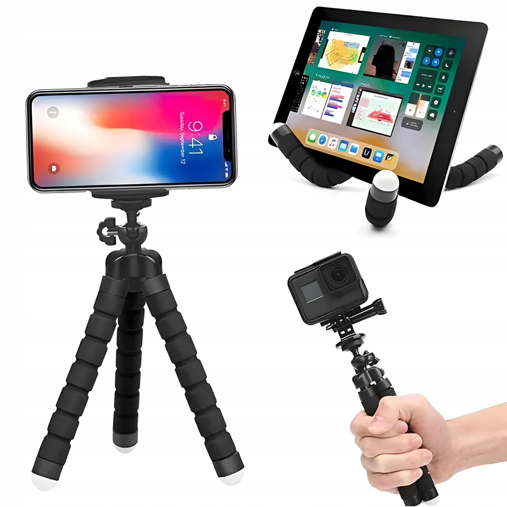 Универсальный штатив позволяет использовать разнообразные устройства на нем: мобильный телефон, фотоаппарат для фотографий или спортивный фотоаппарат.