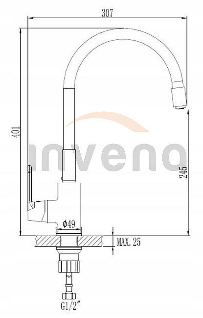 INVENA TREND JOGA PLUS SINK FACTER, СЕРЫЙ, ГИБКИЙ