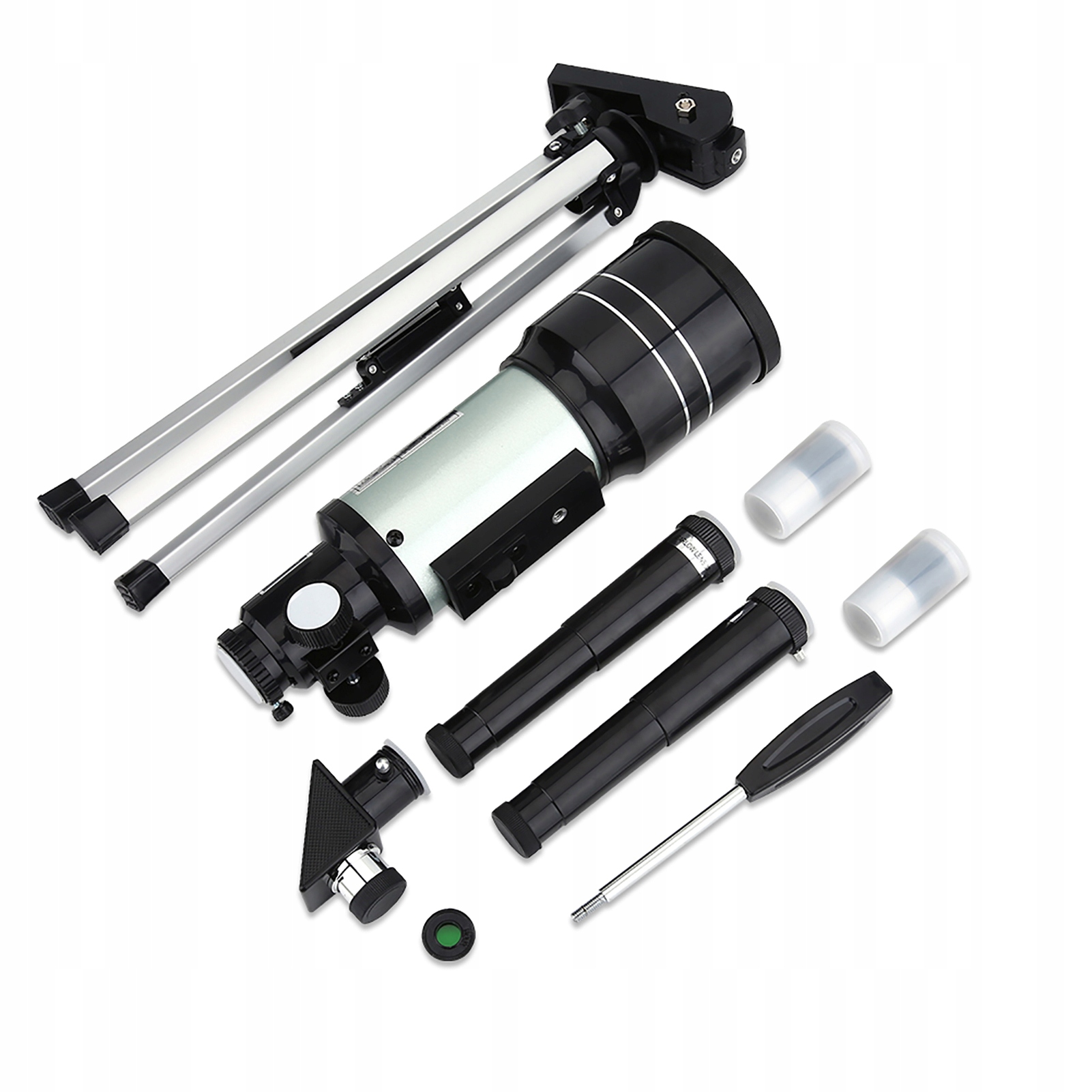 Особенности: Многие заменяемые очки с 1,5-кратным обратимым стеклом и 3-кратным объективом Barlow, чтобы увеличить возможность зрения. Максимальное увеличение 150X приводит к дальним пейзажам. Легко установить без использования инструментов. С штативом телескопа, очень удобным для наблюдения за объектами. Алюминиевый сплав, легкий и портативный, хороший выбор для начинающих астрономов, особенно лучший подарок для детей.