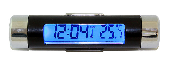 Электронные автомобильные часы и термометр с большим дисплеем с синей подсветкой.