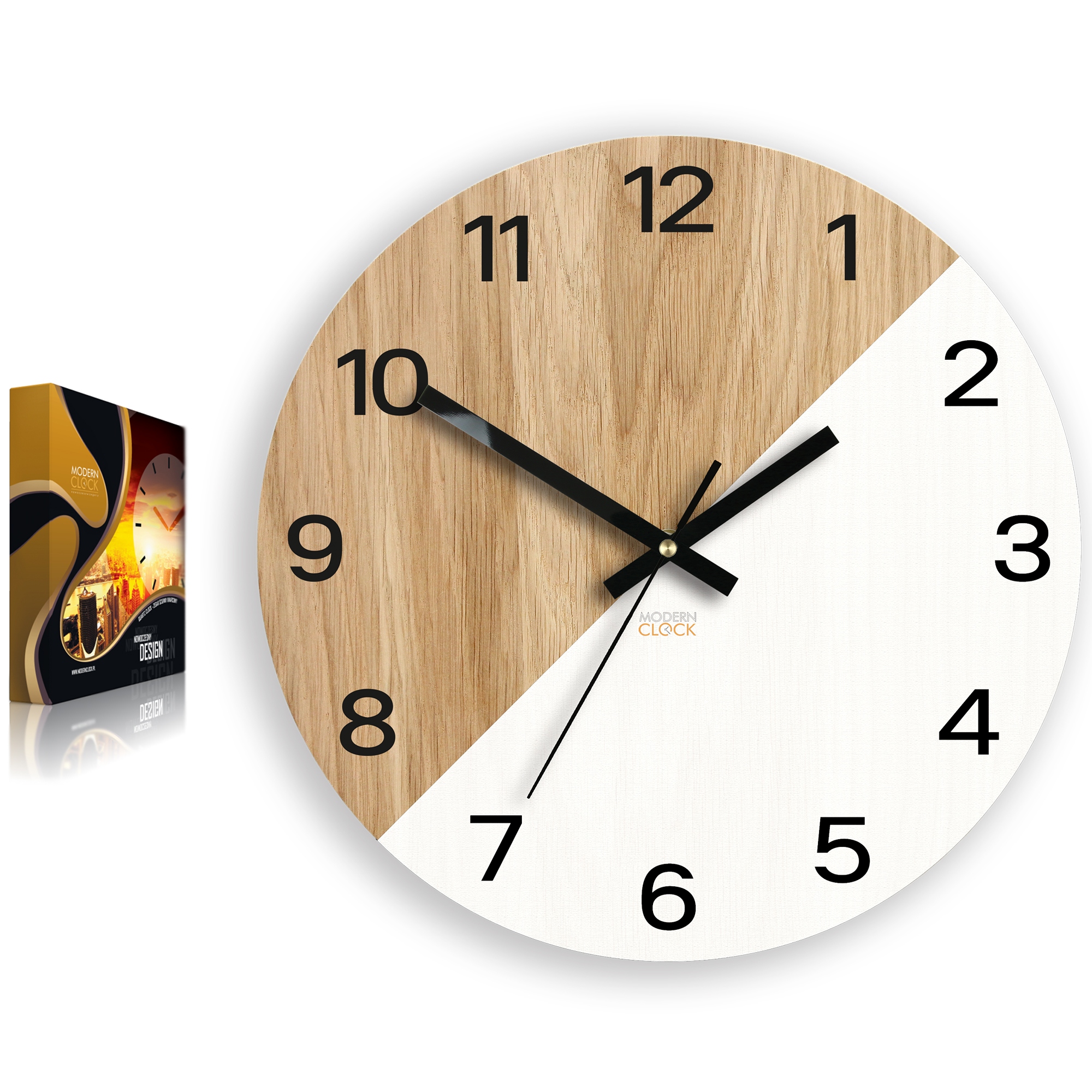 Интересные часы от ModernClock. Он имеет четкий циферблат, который прекрасно вписывается как в современный, так и в классический интерьер. Часы упакованы в элегантную коробку.