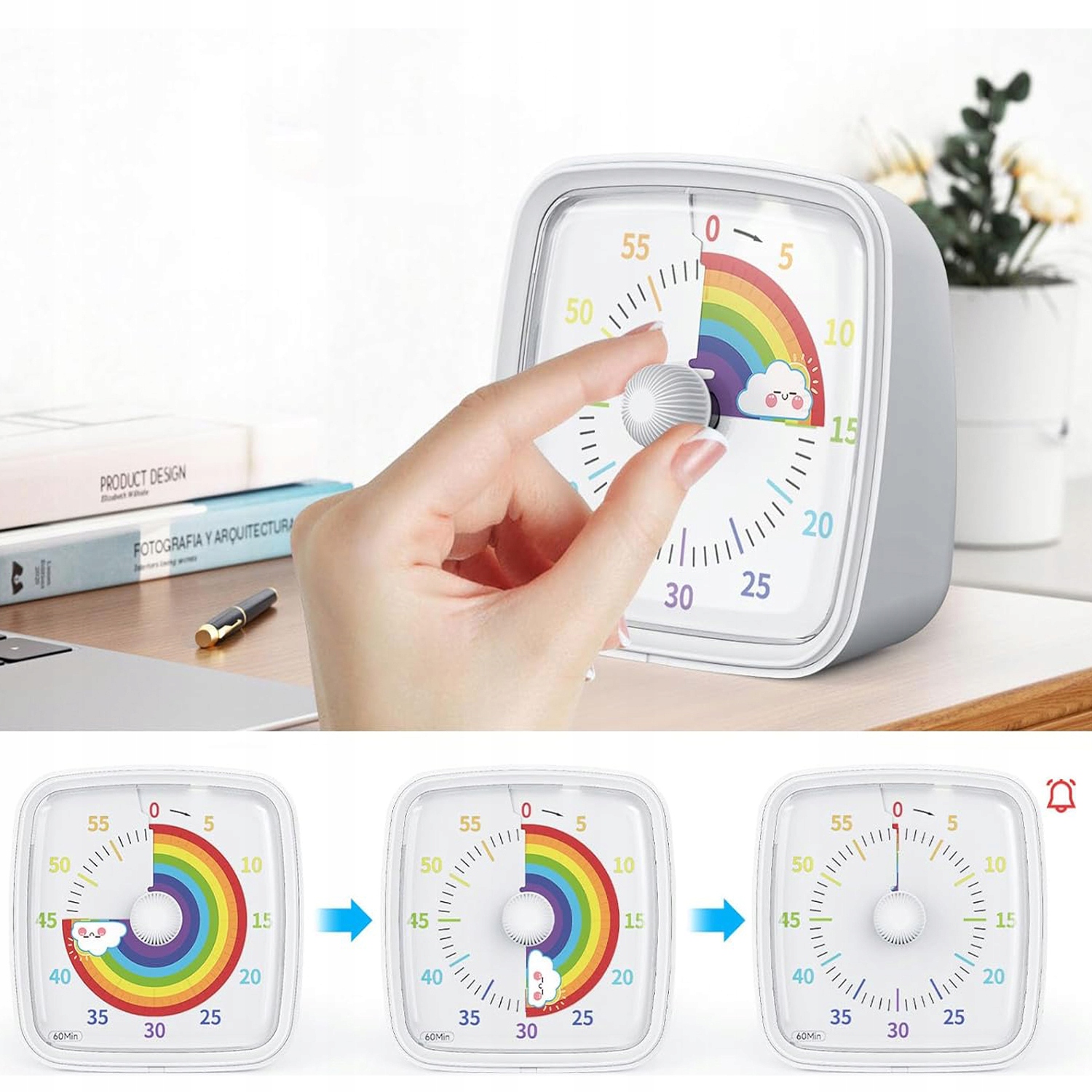 - На этот раз счетчик является визуальным инструментом времени для управления временем. Когда красный диск исчезает, у вас сложилось впечатление, что время ясно исчезает. Восприятие времени позволяет эффективно учиться и работать.