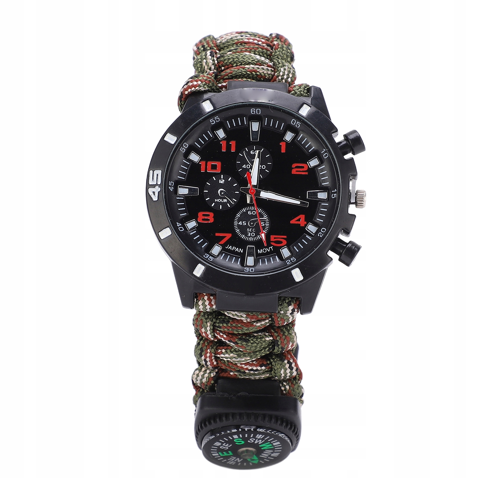 <р>1. БРАСЛЕТ ДЛЯ ВЫЖИВАНИЯ 6-В-1: комплект для выживания на открытом воздухе, компас для цифровых часов со свистком и ремешком на липучке. <р>2. Свисток СКРЕБКА: Скребок также может зажечь огонь. Свисток используется для подачи сигнала помощи через часы и компас, чтобы вы не заблудились. <р>3. СЛОЖНЫЕ ИНСТРУМЕНТЫ И ОБОРУДОВАНИЕ: отличный подарок друзьям или семье для путешествий, кемпинга, оказания первой помощи, альпинизма, охоты, рыбалки. <р>4. УНИВЕРСАЛЬНОСТЬ: Изготовлен из супервоенного парашютного троса, пряжка со встроенным компасом, воспламенитель, аварийное лезвие и свисток. <р>5. СТИЛЬНЫЙ И ПРАКТИЧНЫЙ: спасательное оборудование, необходимое каждому, уникальный многофункциональный дизайн, легкий вес, удобство переноски и использования. <р>. ЧАСЫ БРАСЛЕТ ВЫЖИВАНИЯ 6В1Допускается небольшая погрешность в размерах из-за измерения вручную.
