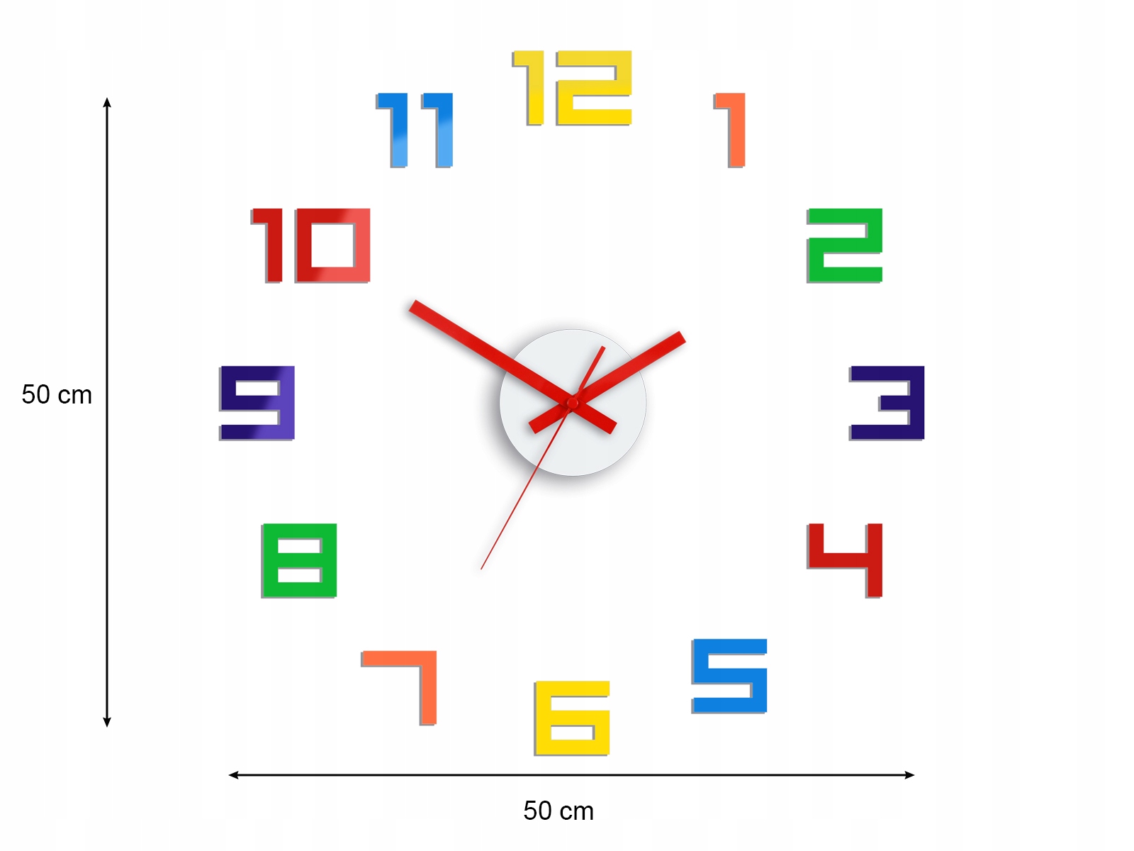 Уникальные и современные настенные часы. Его простота и красота очаровывает каждого, кто на него смотрит. Изготовлен из ЦВЕТНОГО акрилового стекла. Часы были интересно разработаны, чтобы доставить радость самым маленьким. Циферблат с арабскими цифрами позволит легко узнать время.