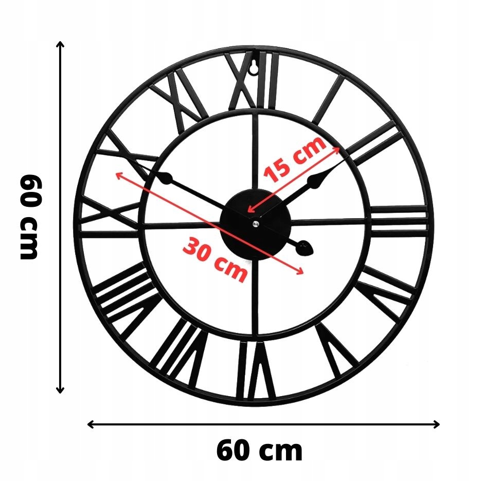 ГОДИННИК НАСТІННИЙ МЕТАЛЕВИЙ ВЕЛИКИЙ, РИМСЬКІ ЦИФРИ, 60 СМ, МЕХАНІЗМ БЕЗШУМНИЙ