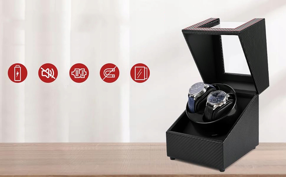 - ⌚- Внешняя оболочка изготовлена из высококачественной искусственной кожи с окошком из органического акрилового стекла, подкладка из МДФ, что прекрасно защищает часы.