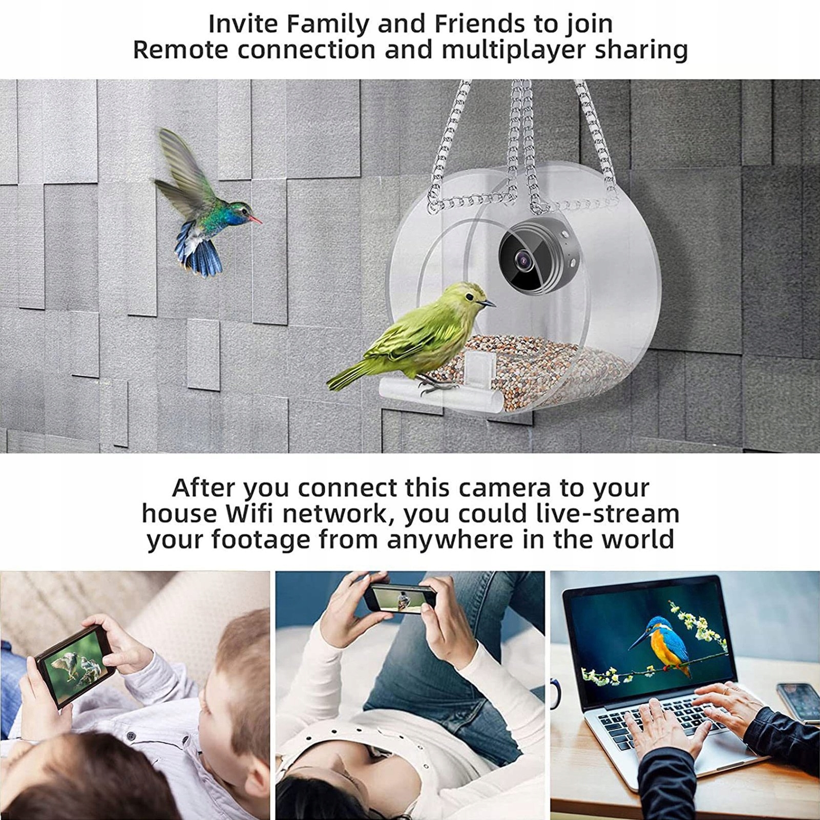 1. Четкий обзор: камера Bird Beeder имеет сверхширокий угол обзора 170 градусов, что позволяет четко отслеживать птиц, прилетающих днем и ночью.