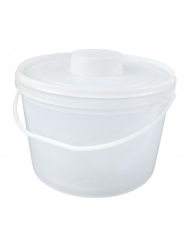 Ведро-кормушка емкостью 5 литров. Изготовлен из прочного искусственного материала. Кормушка состоит из двух частей. Первый – ведро (бак), а второй – крышка со специальным профилем, подходящим к потолку. В крышке имеются отверстия специального размера, через которые пчелы берут корм и содержимое не выливается в улей.