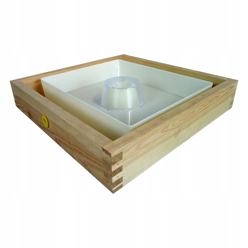 Вмещает до 6 литров сиропа, поэтому кормление не отнимает много времени. Поместите кормушку на пол, вытянув средний паук. Пчелы входят снизу и забирают сироп внутрь. Благодаря прозрачной крышке пчелы не разлетаются по кормушке. Использование прозрачной крышки ускоряет проверку, поскольку нам не нужно тратить время на подъем и проверку количества сиропа еще в кормушке.