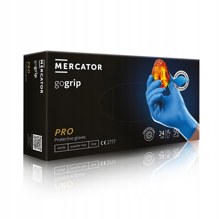 ПЕРЧАТКИ MERCATOR GOGRIP СИНИЕ НИТРИЛОВЫЕ ОДНОРАЗОВЫЕ, БЕЗ ПОРОШКА, ПРОЧНЫЕ СИНИЕ РАЗМЕР XXL, 50 ШТ.