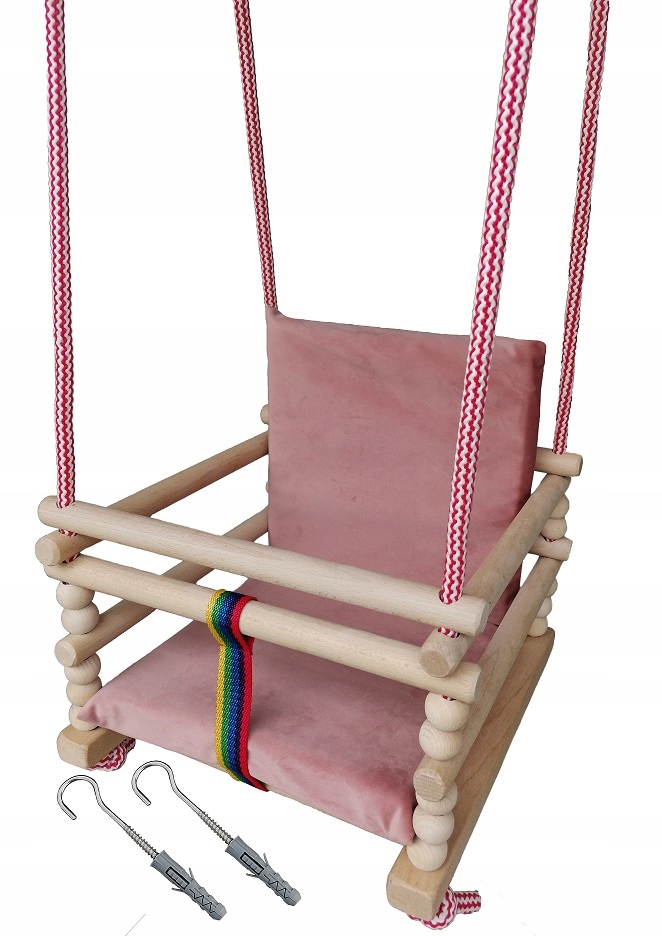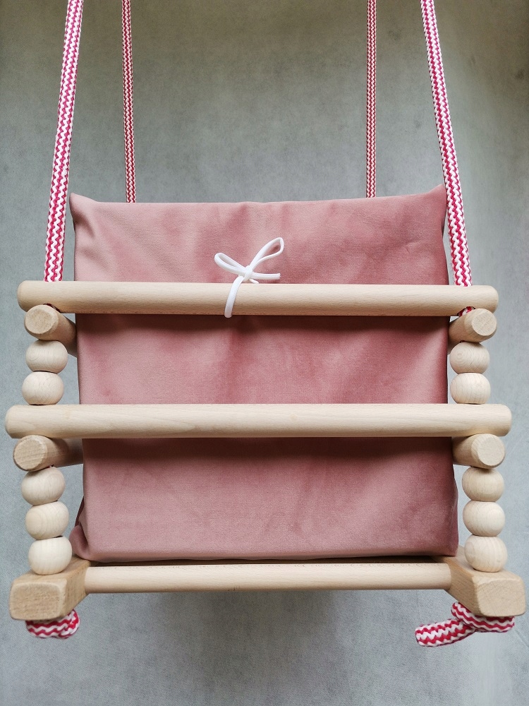 Качели оснащены матрасом из невероятно мягкой ткани Velvet. . Материал обладает высокой устойчивостью к истиранию, царапинам и жидкостям. Он сертифицирован Oeko Tex Standard 100. Наполнителем матраса является мягкая губка толщиной 3 см, которую можно снять для стирки наволочки. Матрац имеет веревочки, позволяющие надежно прикрепить его к деревянным перекладинам качелей. Подгонка размера матраса под качели обеспечивает удобную опору для ног и спины ребенка.