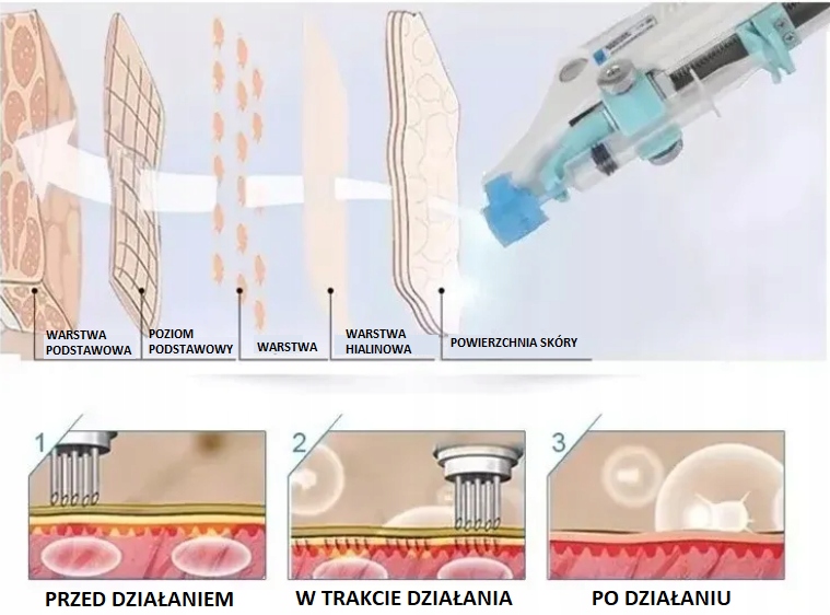 Пистолет для водной мезотерапии всасывает кожу посредством вакуумного всасывания, а двигатель вгоняет иглы в кожу. Вы можете выбрать глубину иглы и количество инъекций (гиалуроновая кислота, плацента, PRP, PPP, PPC и т. д.). Иглы автоматически втягиваются после инъекции. Пистолет для водной мезотерапии максимально поместит инъекцию в дерму, что улучшит использование инъекции и позволит избежать отходов. Водная мезотерапия использует минимально инвазивные методы для стимуляции коллагена в костях и коже, не повреждая эпидермис.