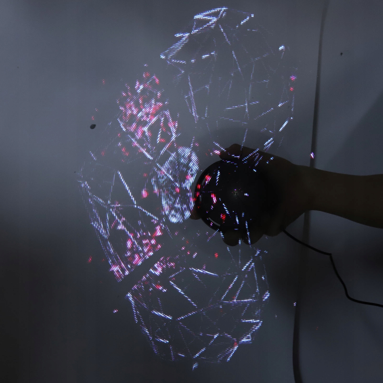 2. 672 светодиодных бусины: 3D-голографический веер из 672 профессиональных светодиодных бусин, излучающих удивительный свет и изображения. Настоящий визуальный голографический эффект заставляет вас чувствовать себя в воздухе, помогая лучше привлекать клиентов.